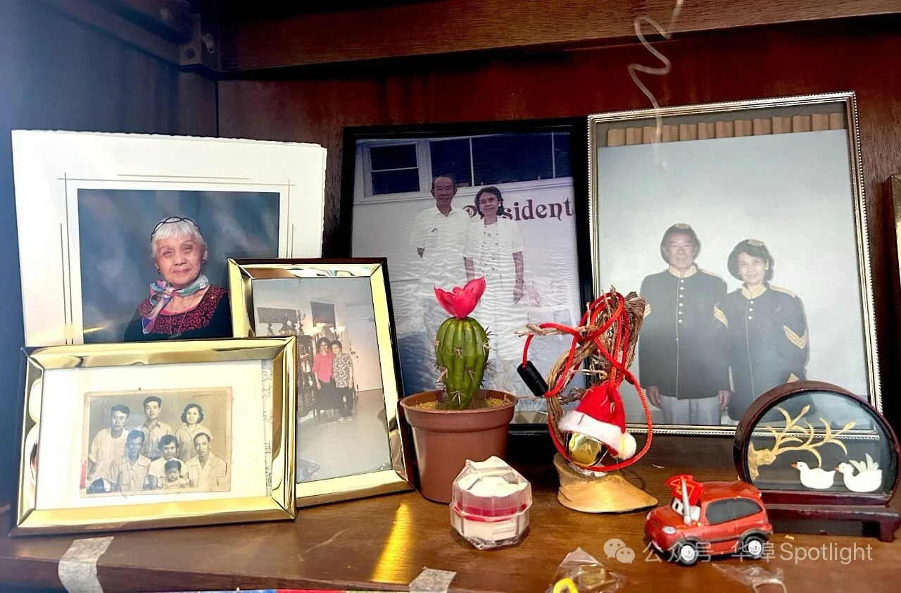 A collection of photographs displayed in Huang Li Chaolian’s home