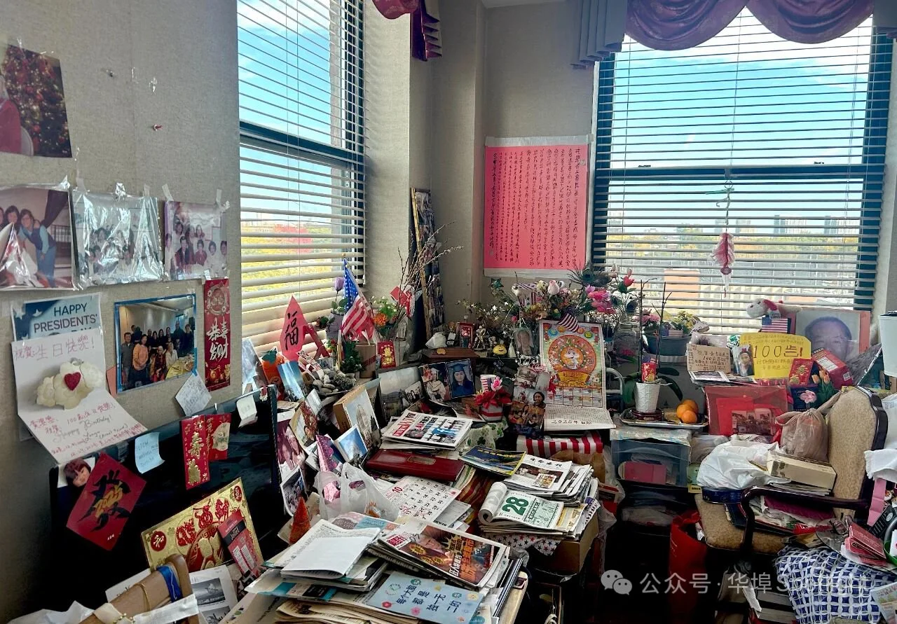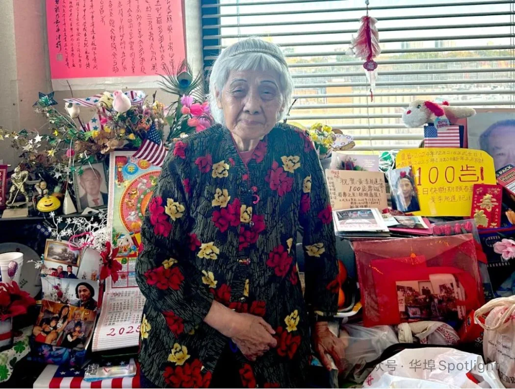 Several handwritten 100th-birthday cards from family and friends are placed prominently by her window. One day in early 2025, staff suddenly asked her to come down to the first floor of the building—only for her to discover that everyone had secretly prepared a surprise celebration for her 100th birthday, complete with a specially ordered cake that read “Happy 100th Birthday.”