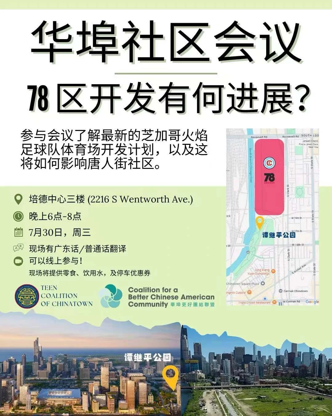 華埠更好團結聯盟即將與Teen Coalition of Chinatown共同舉辦關於78區的社區會議,敬請參與