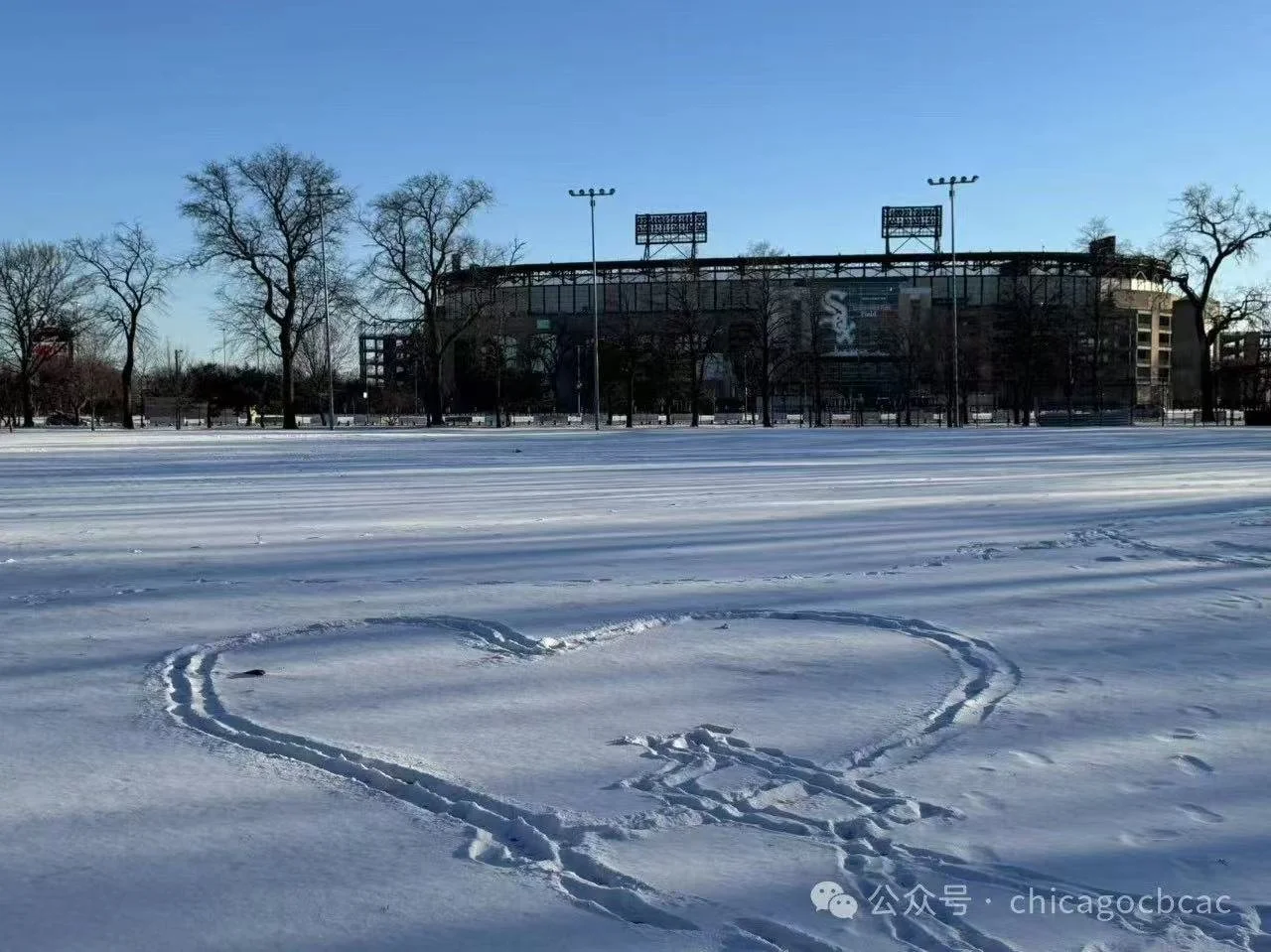 圖為2月14日情人節前後的Armour Square公園和白襪隊主場。